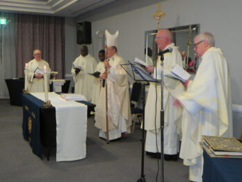 The evening began at 6.30pm when Archbishop John Sherrington celebrated Mass together with five concelebrants and one hundred and thirty Catenians wives and guests. The Mayor of St Helens, Councillor Severiano Gomez-Aspron MBE joined our celebrations and the Catenian National President, Gerry McCormack and his wife Anna were our Principal Guests.