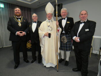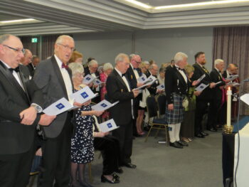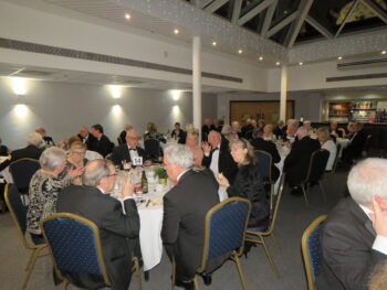 A three-course dinner with wine followed. We were joined by clergy who because of duties in their Parishes earlier in the evening were unable to join us for the Mass. The evening closed with a toast to the King, presentation of floral bouquets to the lady guests, and a gift of a St Helens Glass Vase to the National President.